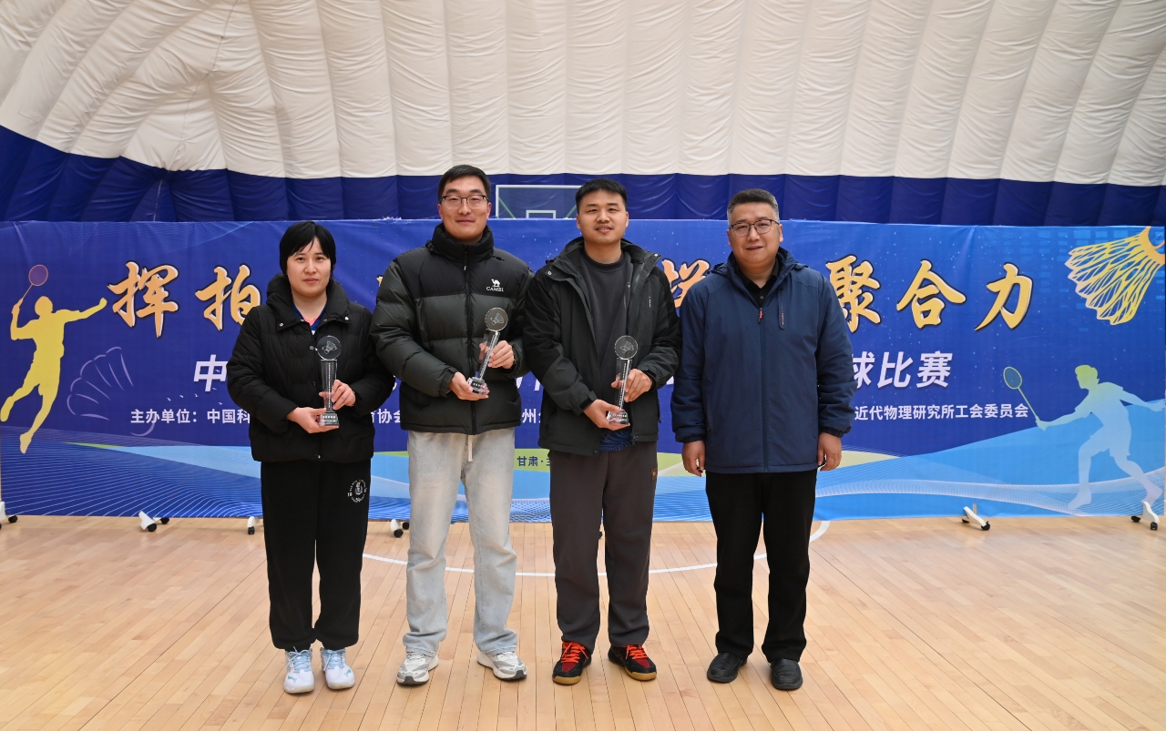 經(jīng)過(guò)激烈比拼,蘭州化物所、近代物理所、西北研究院代表隊(duì)分別獲混合團(tuán)體賽冠軍、亞軍和季軍;蘭州分院機(jī)關(guān)、青海鹽湖所和西北高原所代表隊(duì)分別獲優(yōu)秀組織獎(jiǎng)、團(tuán)結(jié)拼搏獎(jiǎng)和體育道德風(fēng)尚獎(jiǎng)。蘭州化物所文澤東、近代物理所封安輝和青海鹽湖所王懷有分別獲男子單打冠軍、亞軍和季軍;近代物理所吳曉霞、蘭州化物所楊恩芳和西北高原所陳曉澄分別獲女子單打冠軍、亞軍和季軍。